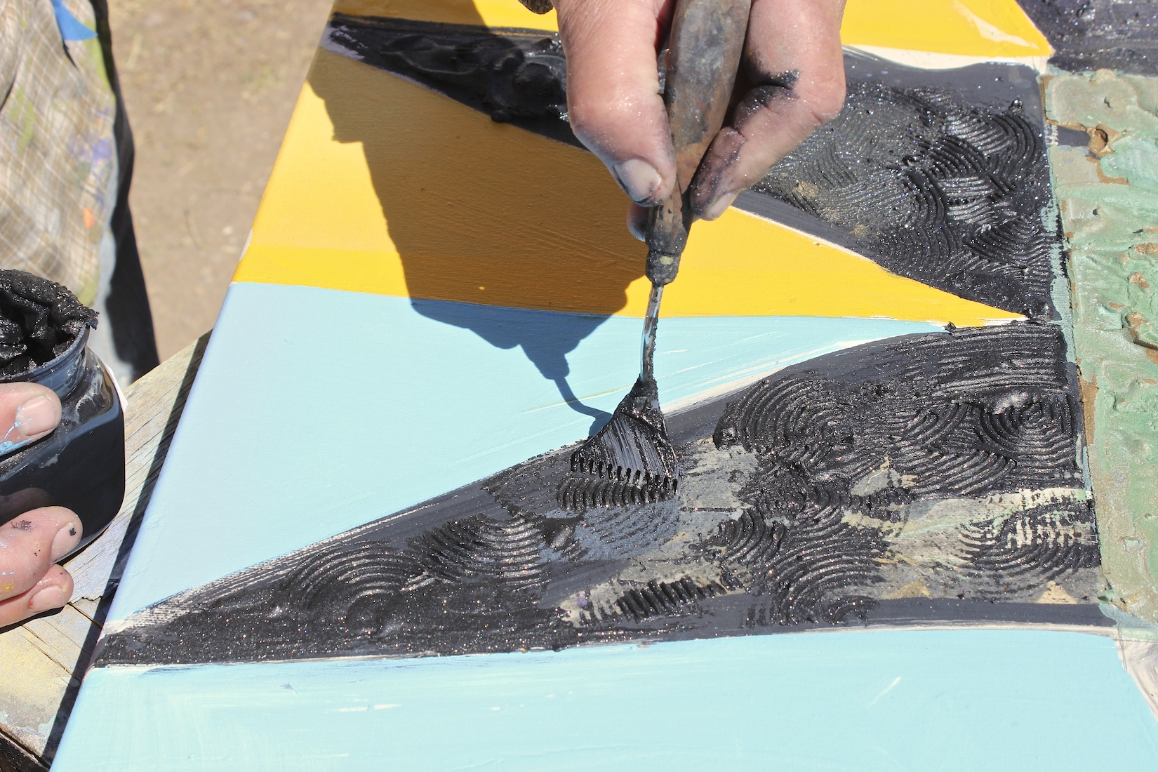 Martha Living smeared out unevenly with a pallet knife. Note same line of product in the lower Tentacle/Ray in black w/sparkles: