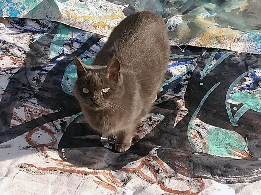 brootie comes. on her little cat feet. she sits looking. over warp and weft. on silent haunches. and then moves on. *