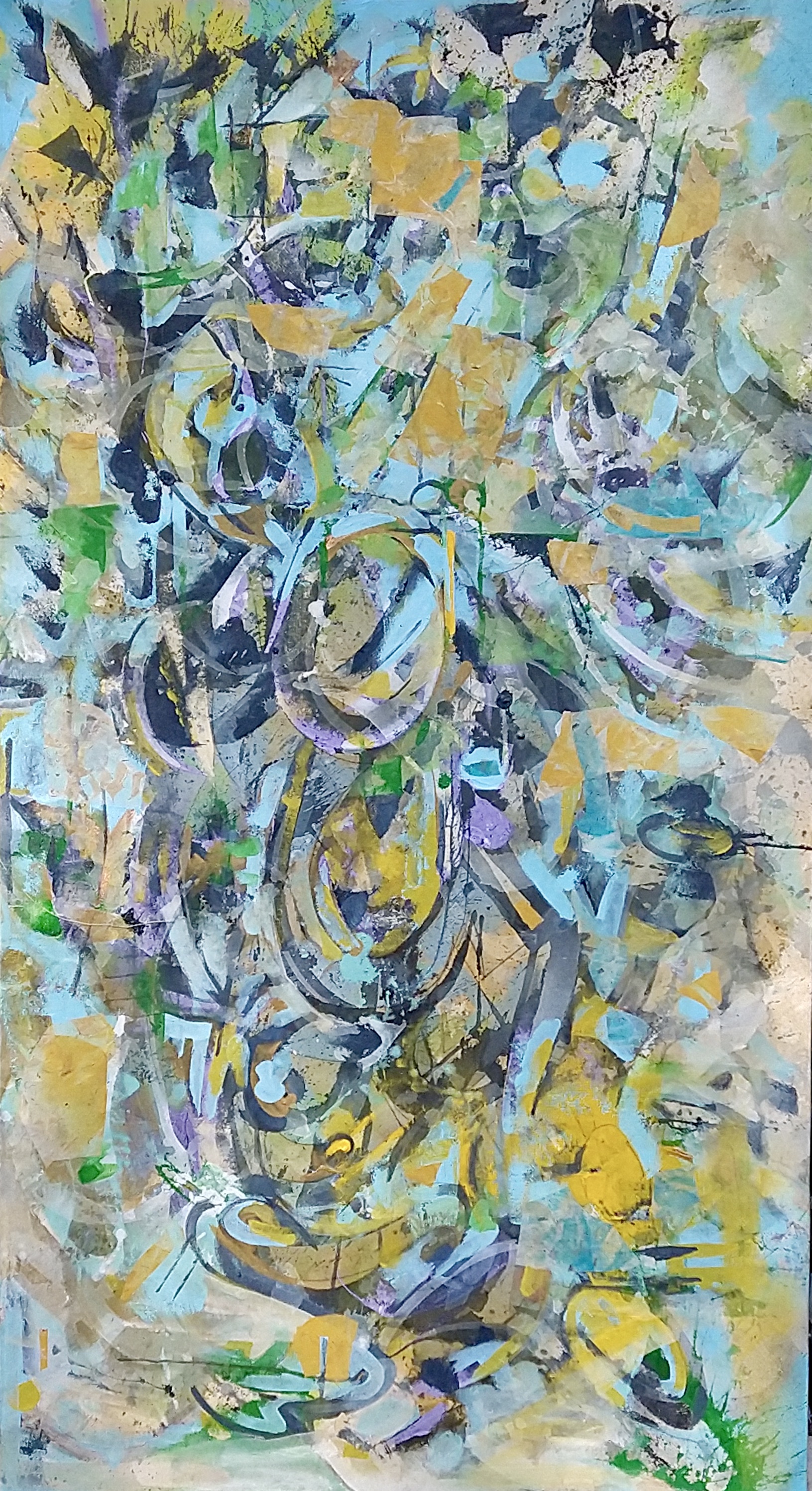 66 X 36″ Acrylic, Spray Enamel on Paper, on raw canvas.