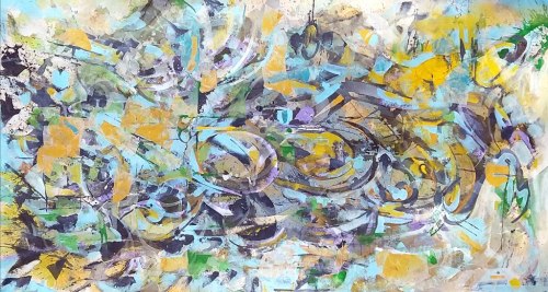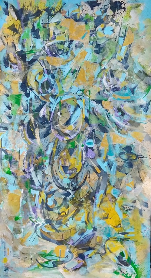 66 X 36″ Acrylic, Spray Enamel on Paper, on raw canvas.