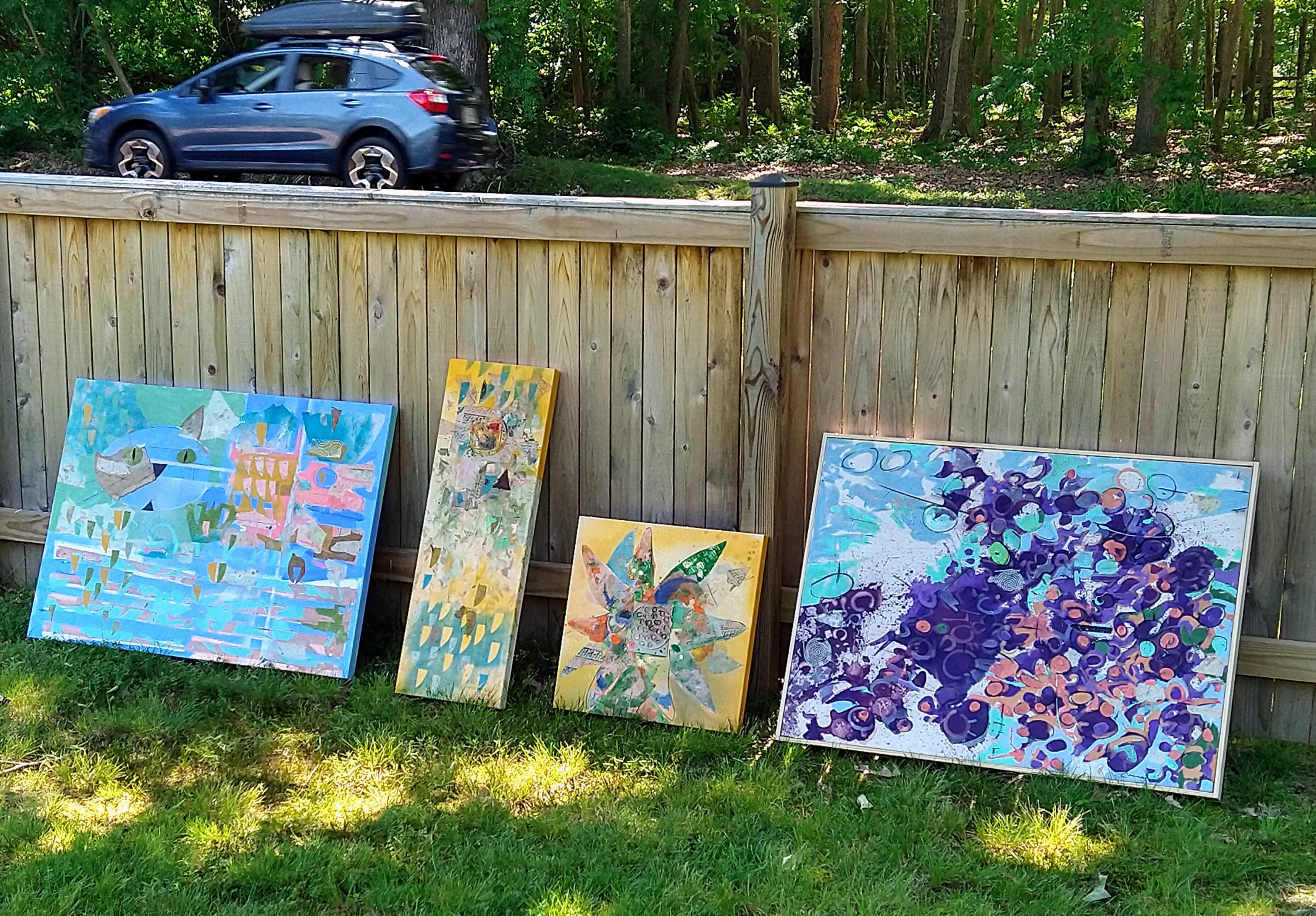 Here is work on display at Tish Gallery in Chestertown, Maryland, “Red, Tish, and Blue” July show: Green-Eyed Cat, She Like Salmon in Her Bowl, Sea Glass Blues, Radience, and Dropping Acorns. Hope that this is the first of many shows with Tish Fine Art Plus in charming Chestertown.