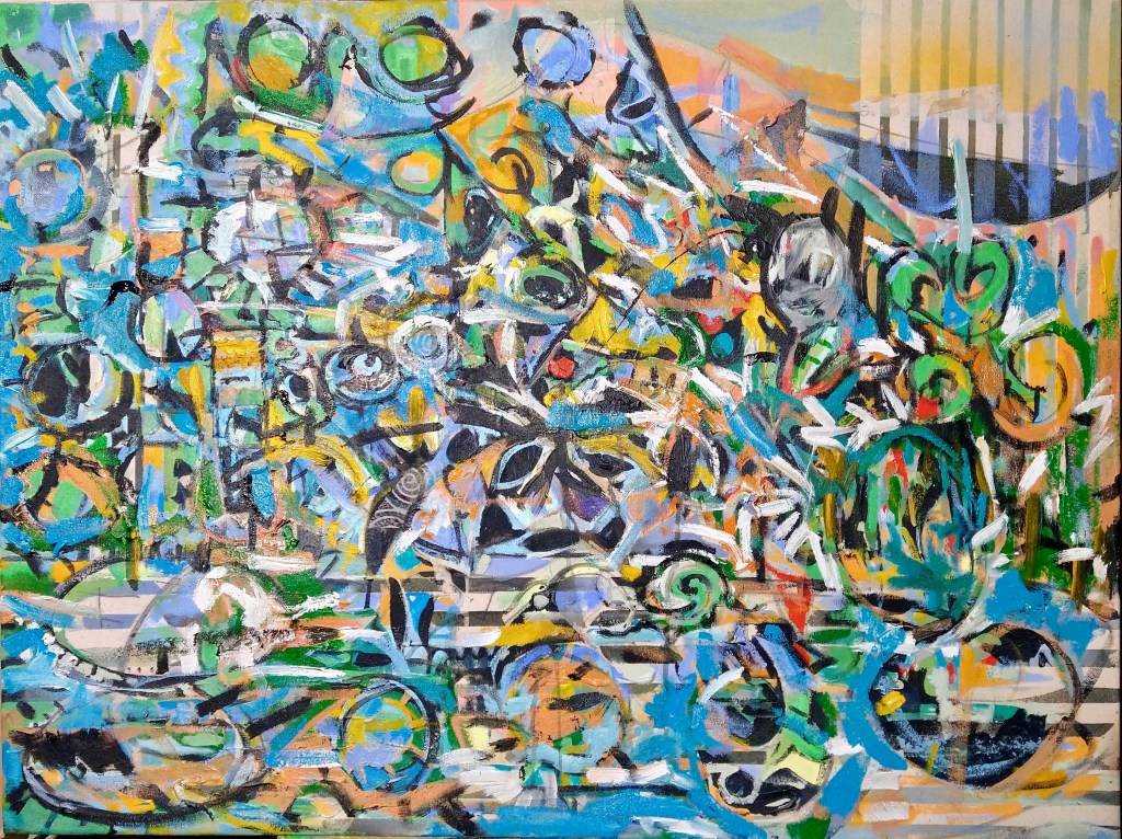 Still Life/Bodega. 40 X 30″ acrylic on canvas. I “finished” this last August ’21. It looked like this: