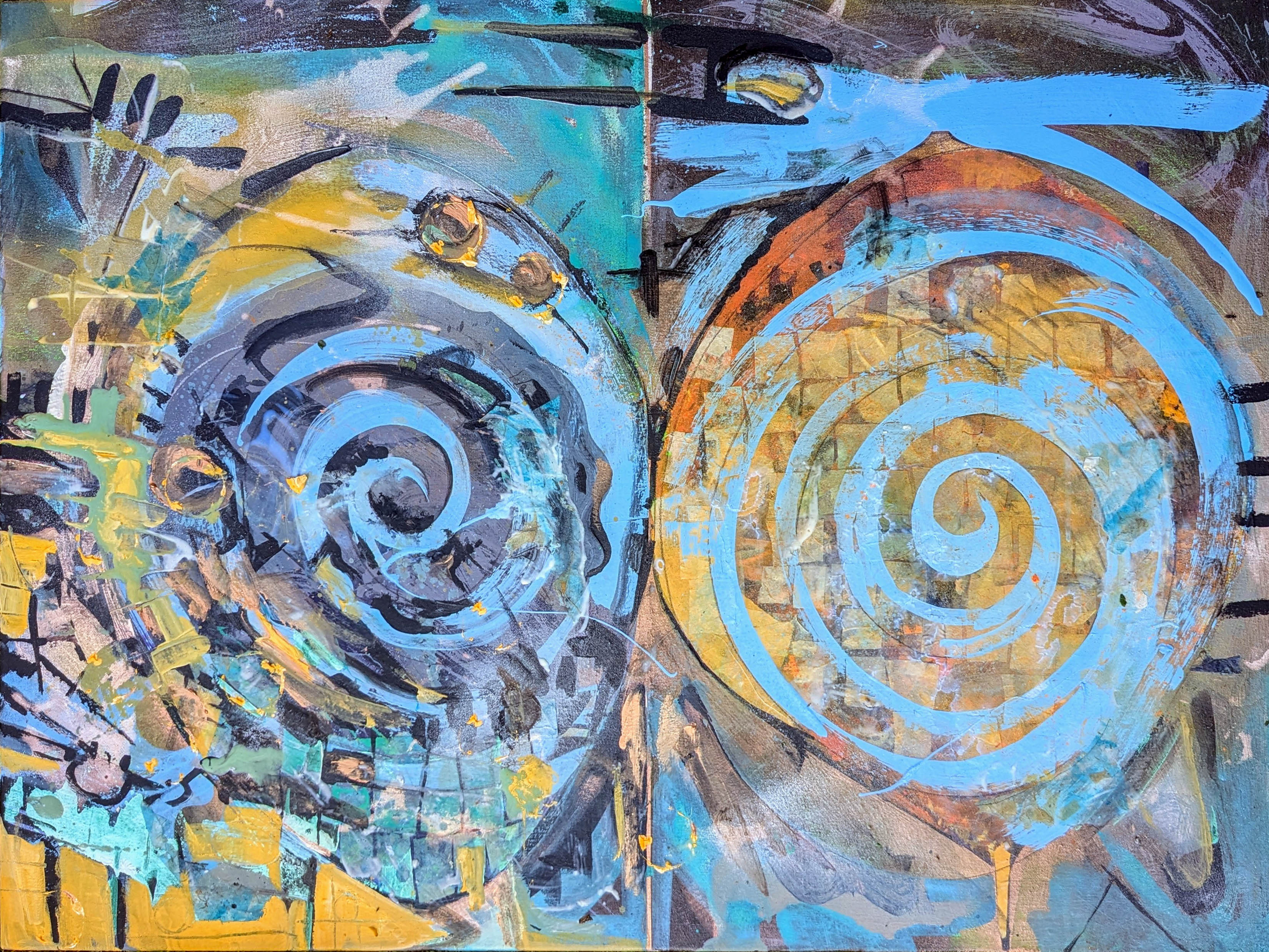 Acrylic on raw canvas w/spray enamel and some paper. This will roll up until I decide if I’ll stretch it.