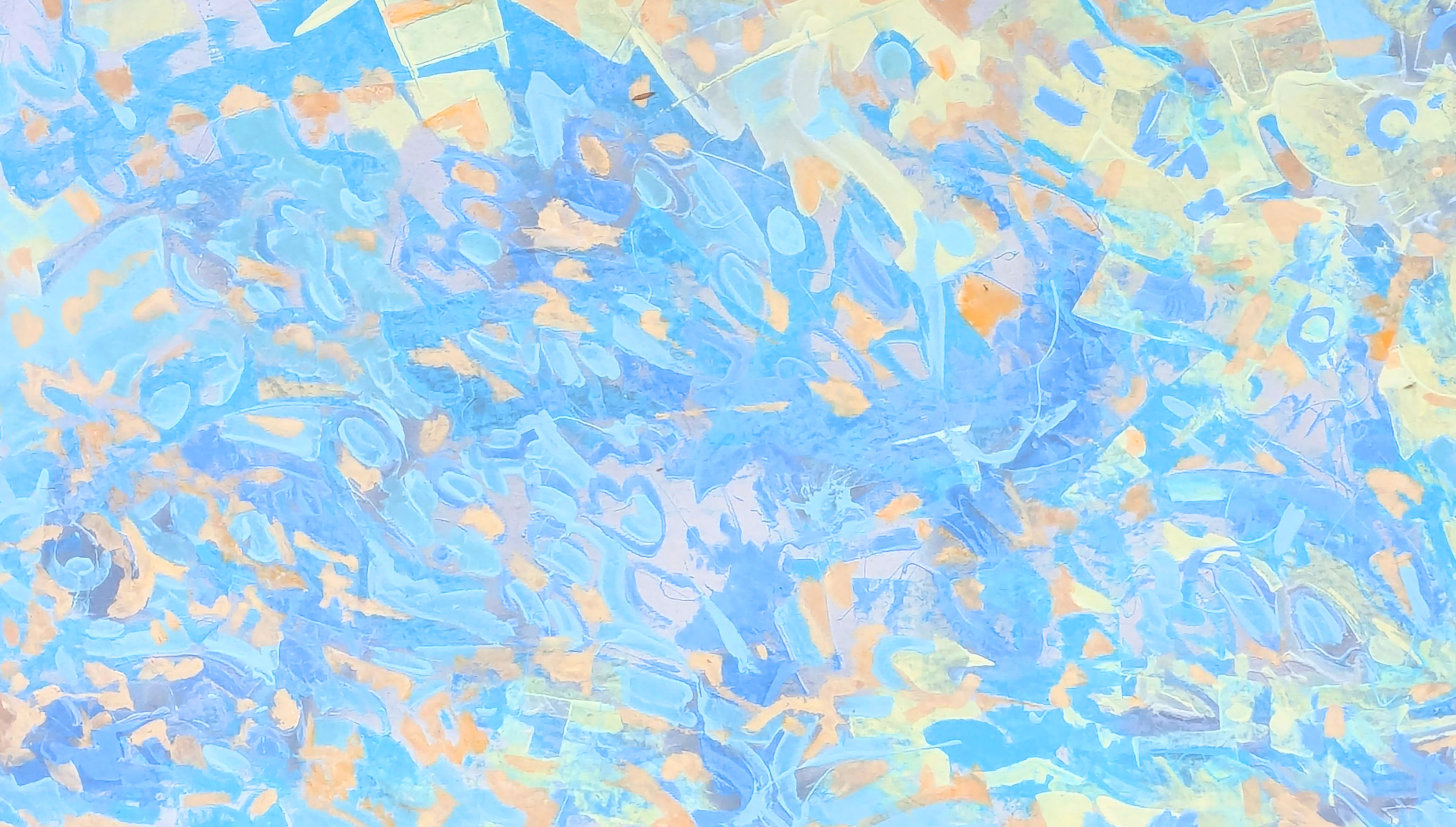 Work in progress. 60 x 30″ Warm to Cool. Acrylic on unprimed canvas with spray enamel.