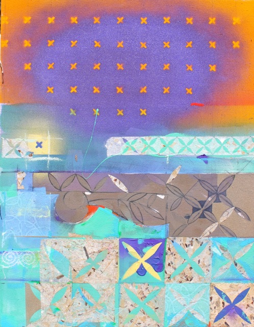24 X 36″ Acrylic, collage, Spray enamel.