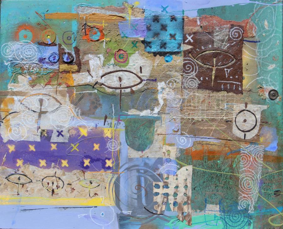 Las Cruces, NM, August 2013 24 X 30″ Acrylic, collage, spray enamel, oil stick, washers on panel Private Collection