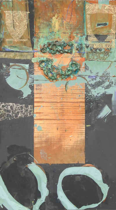 17.5 X 30.5″ acrylic, collage on panel.