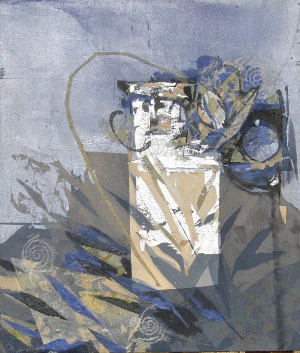 20 X 23″ silver leaf, collage, acrylic on panel