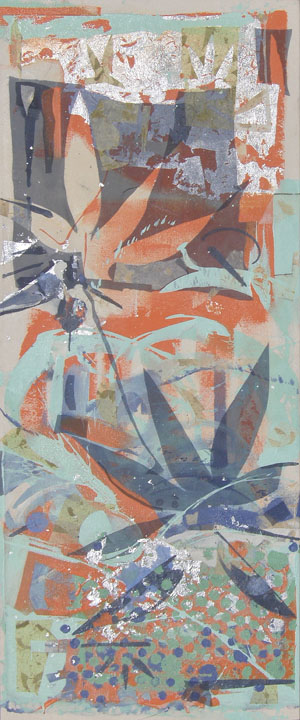22 X 52″ acrylic,collage, silver leaf on canvas.