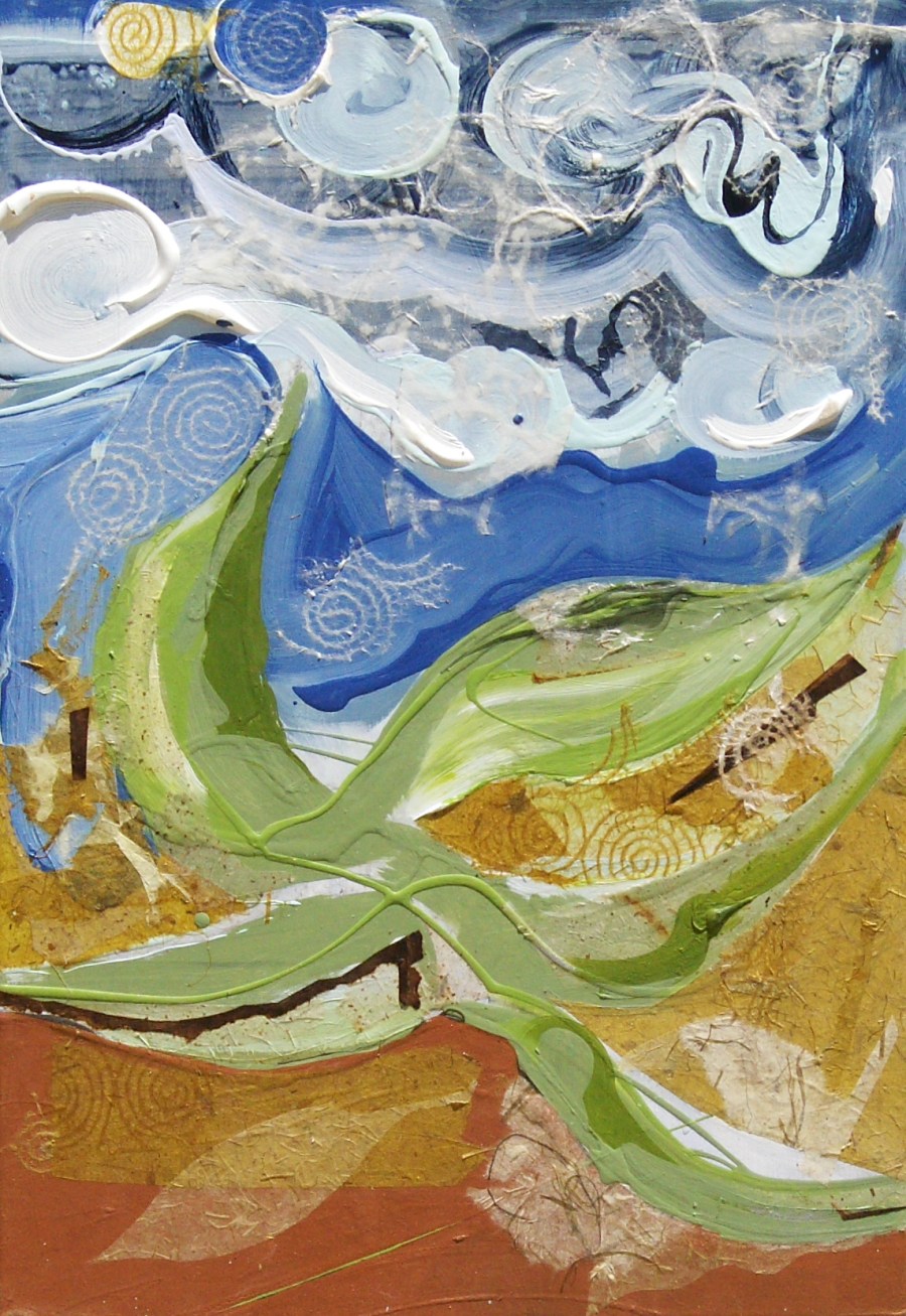 Las Cruces, NM, July 2011 Acrylic/collage on panel, 18 x 26″ Available: $300.00