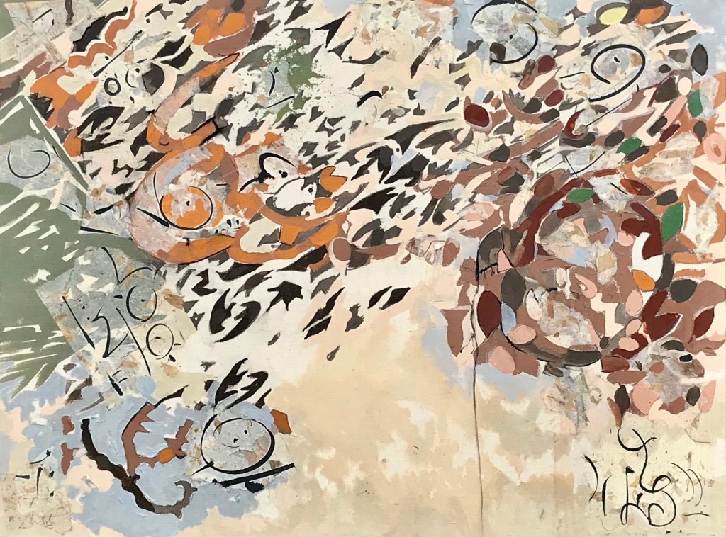 *By Numbers 65 x 38″ Acrylic on raw canvas, aerosol enamel, paper