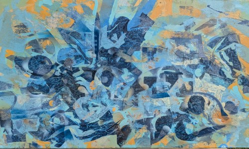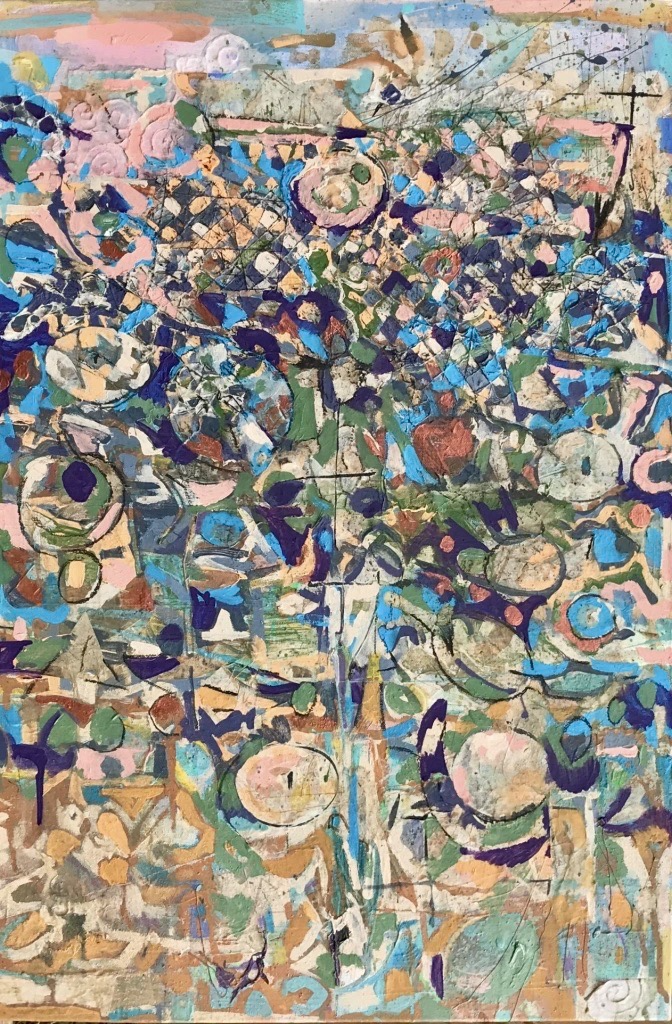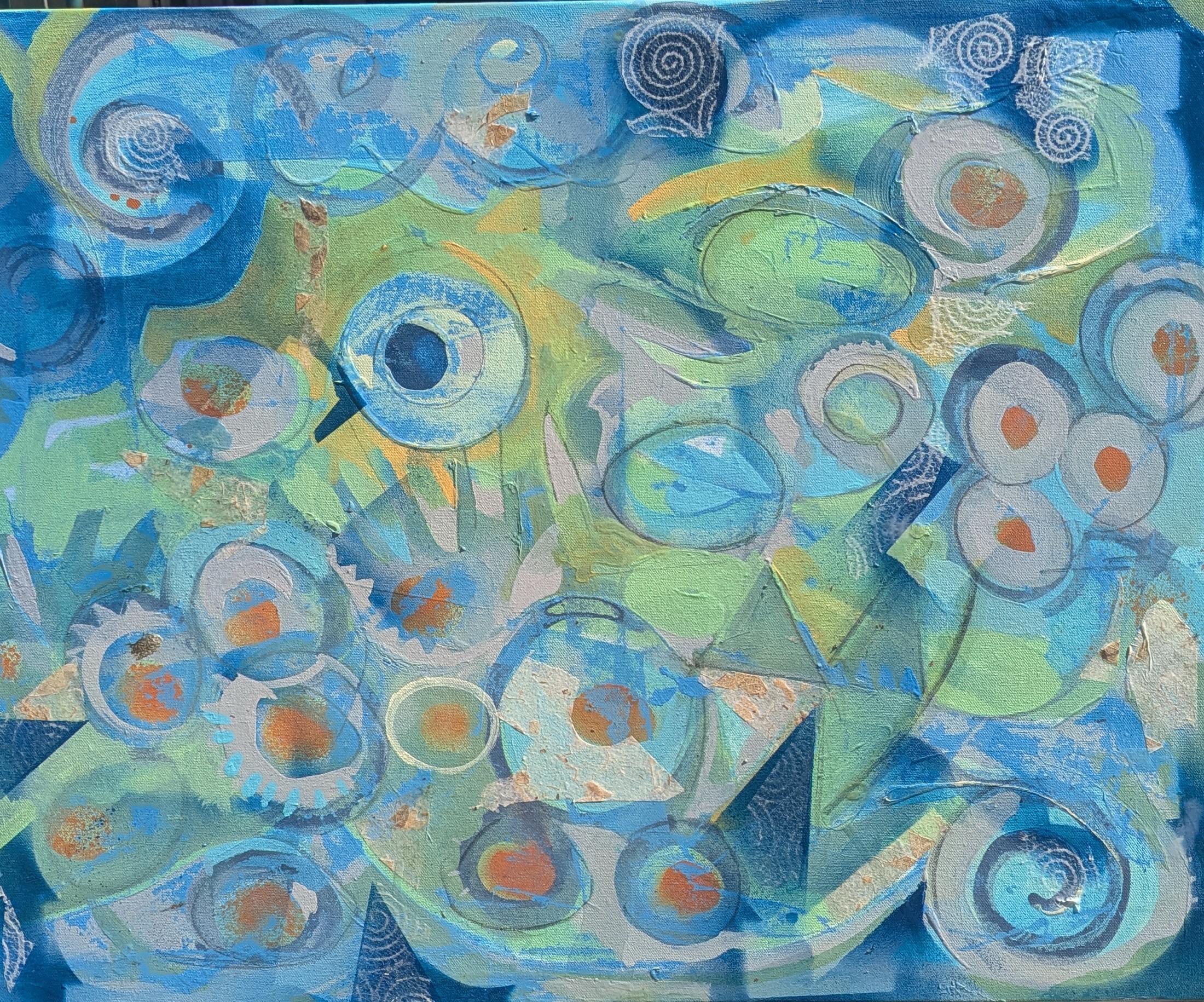 “Koi Pond” Acrylic/paper on canvas. 24 X 36″ April, 2017. Private Collection