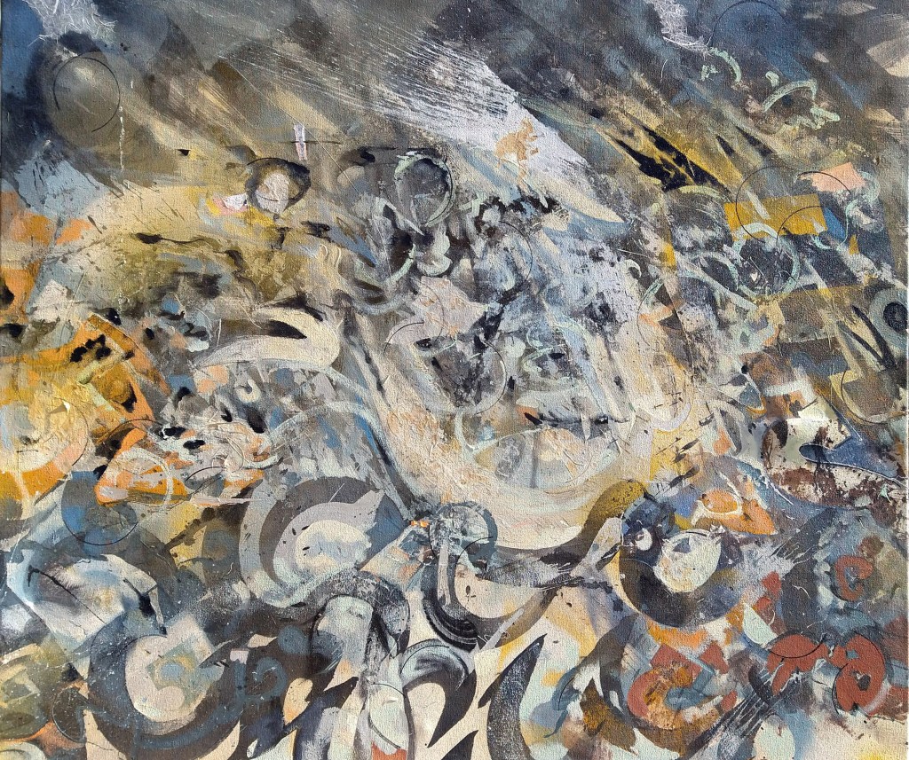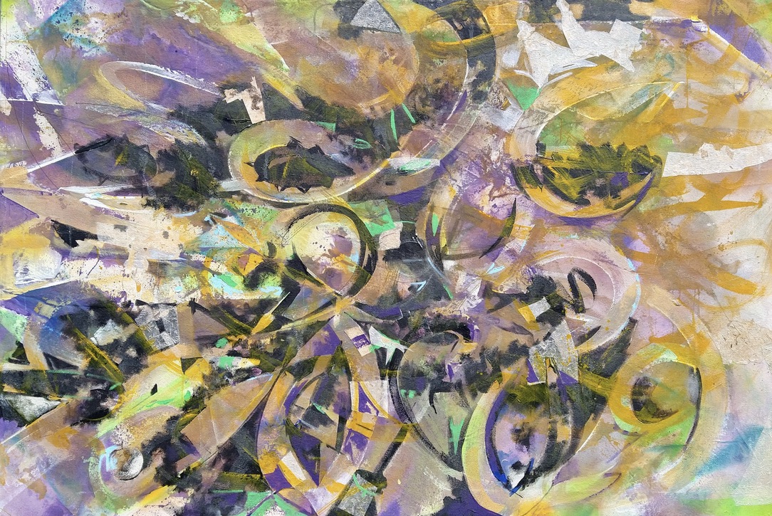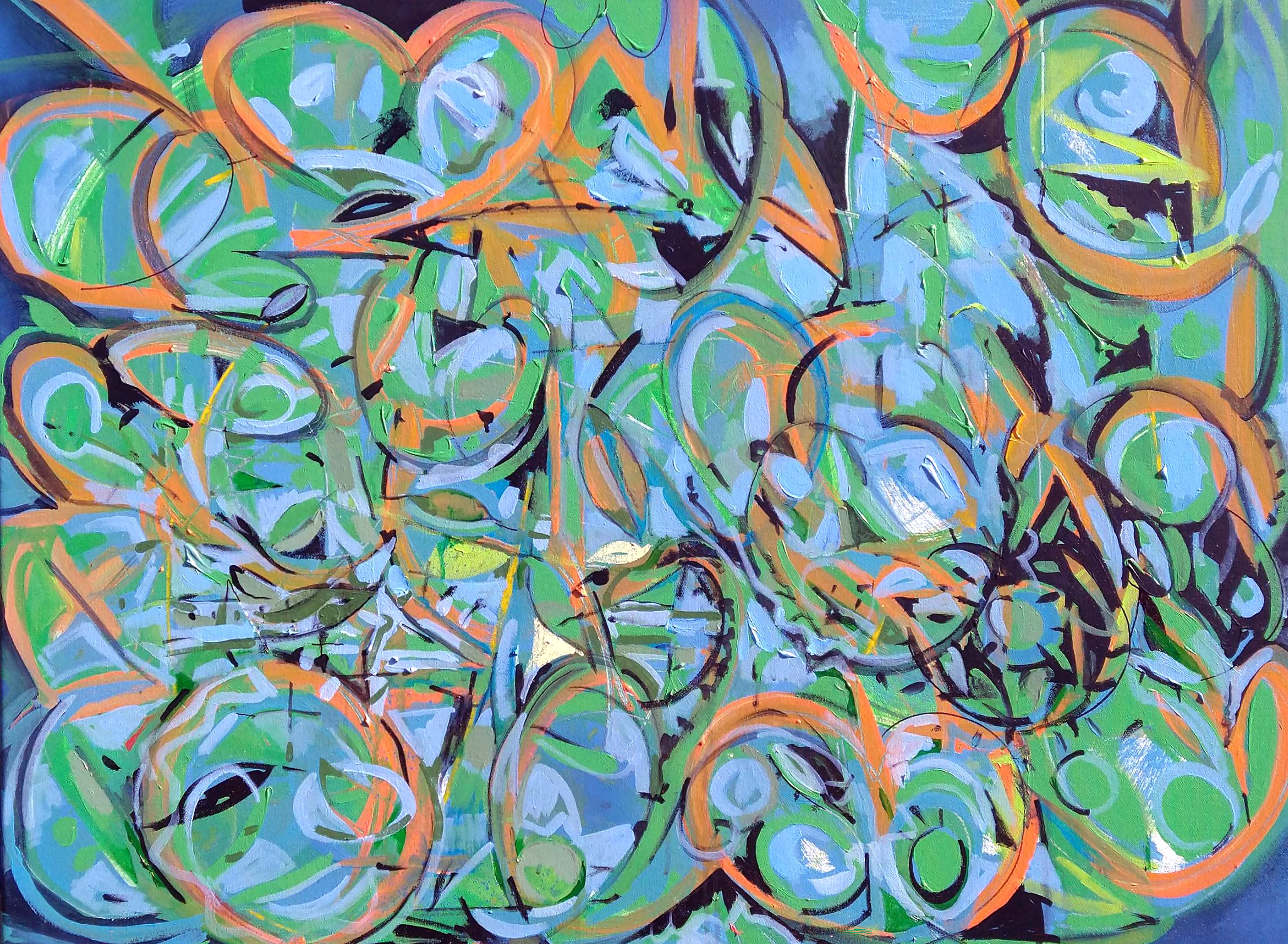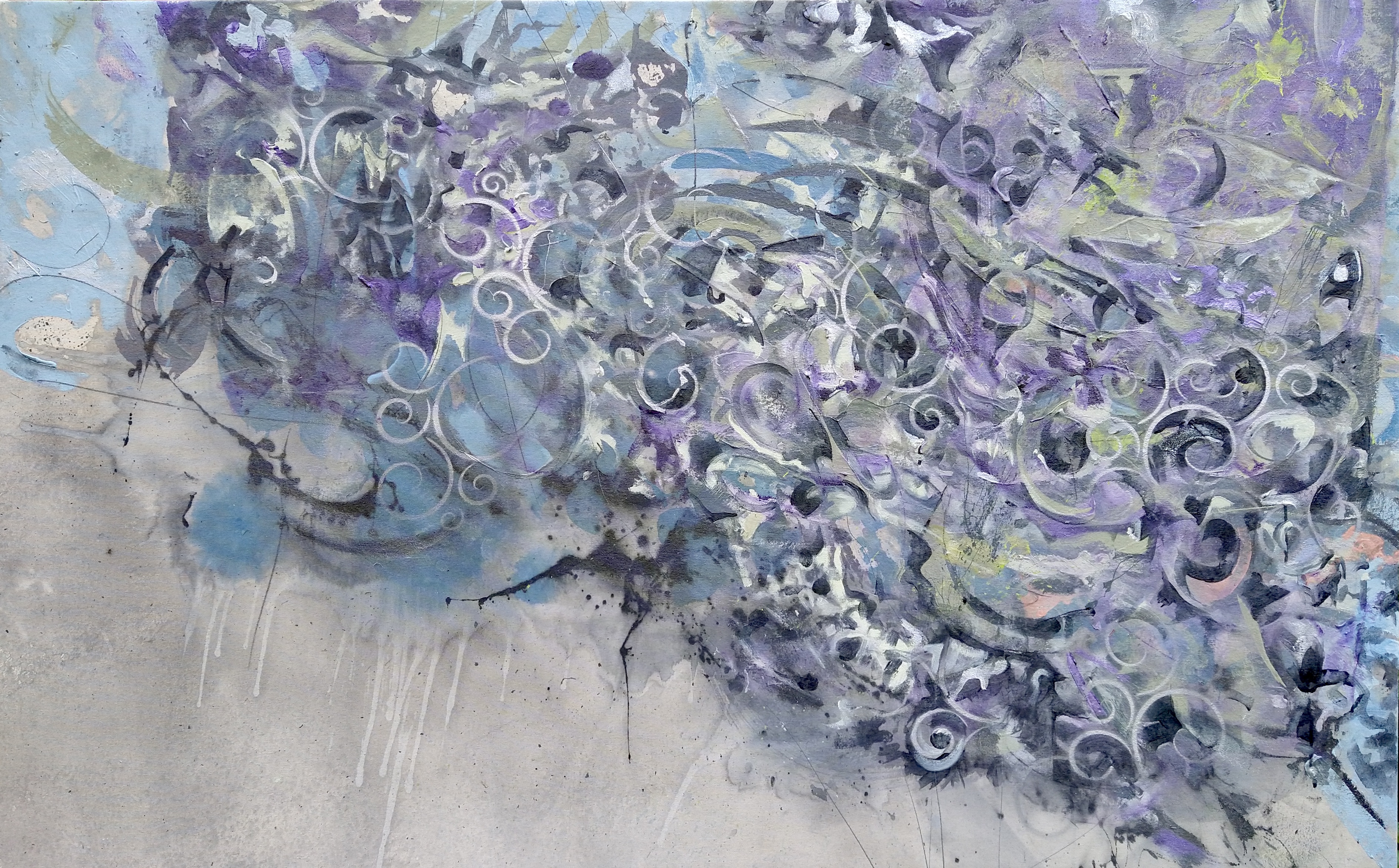 *Orchestral, 60 x 40″ Acrylic and Spray Enamel on Unprimed Canvas