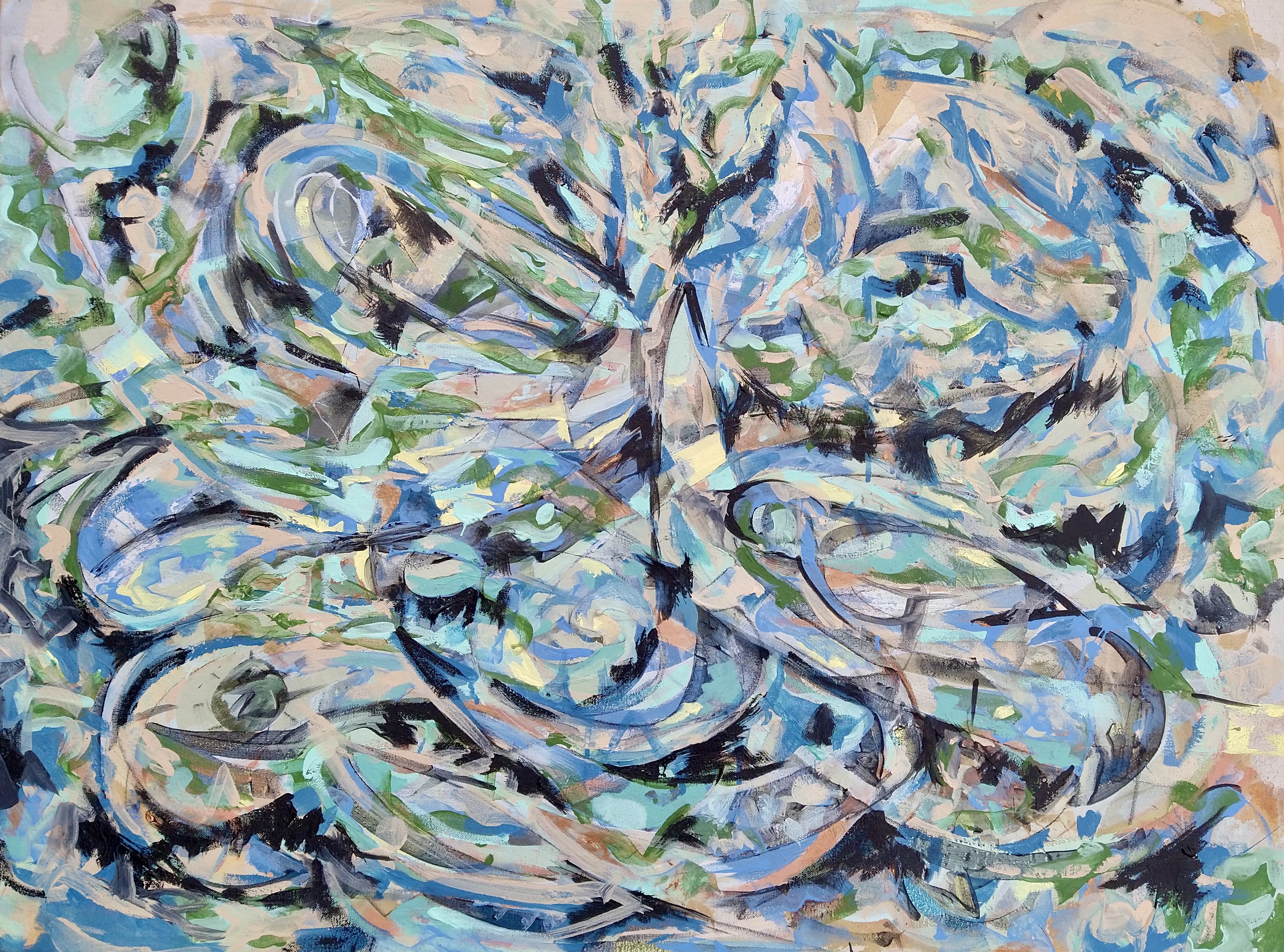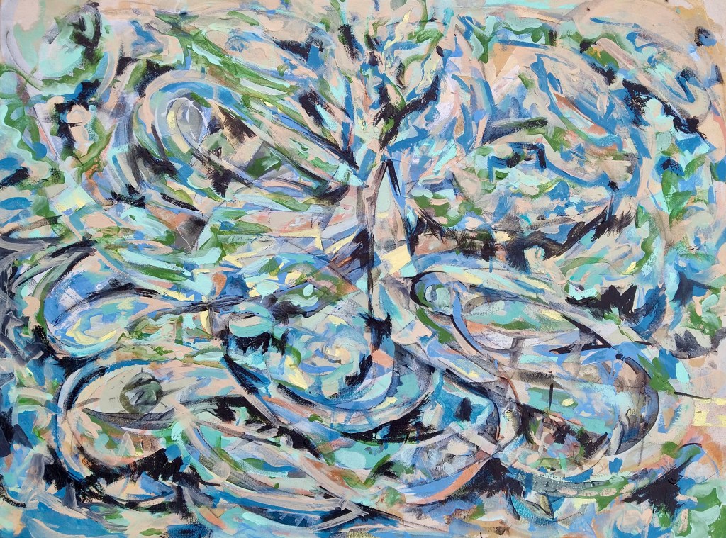 *Working title “Lemon Grass Shoreline” 24 x 18′ Acrylic on Prepared Canvas.