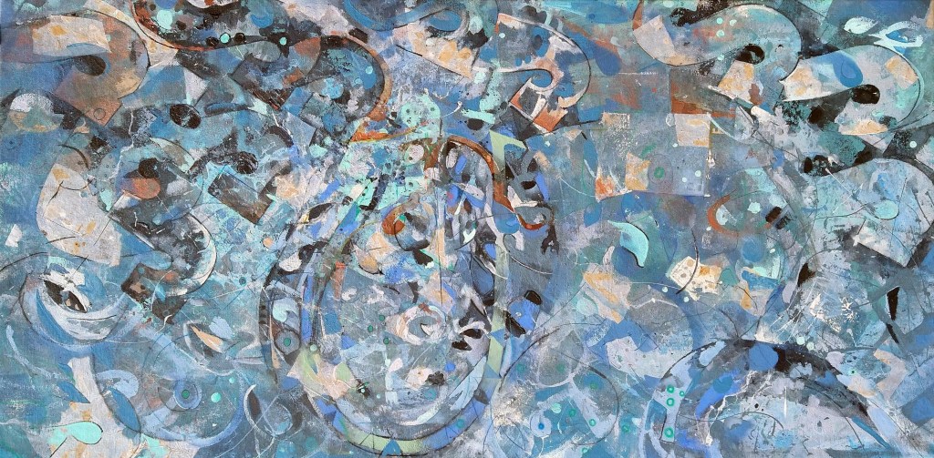 Surge . . . 63 X 30″ Acrylic on Canvas. Set aside November ’20, Completed March ’21 Private Collection
