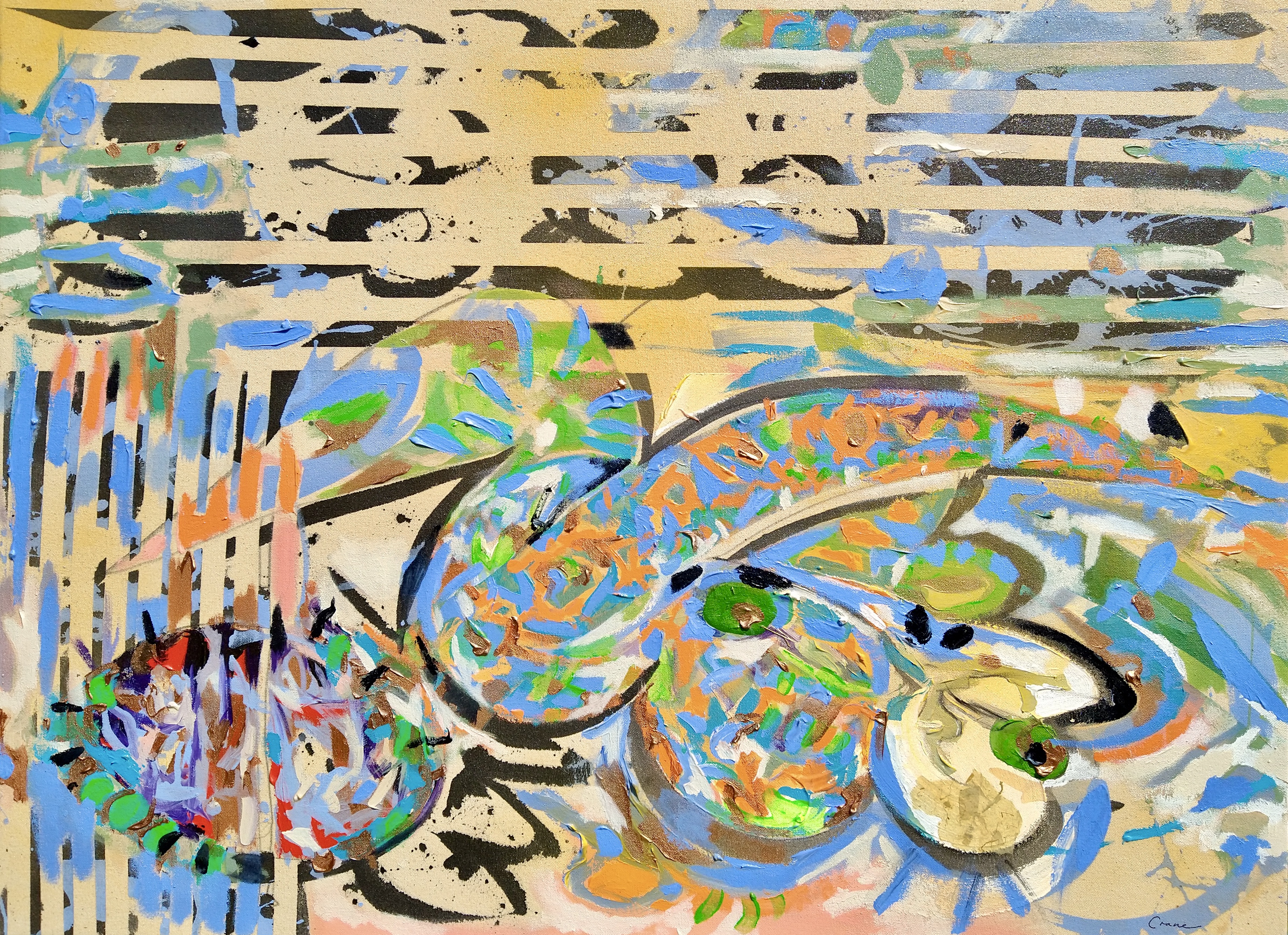 * “Schooling” 40 X 30″ Acrylic on Canvas. April/May 2021