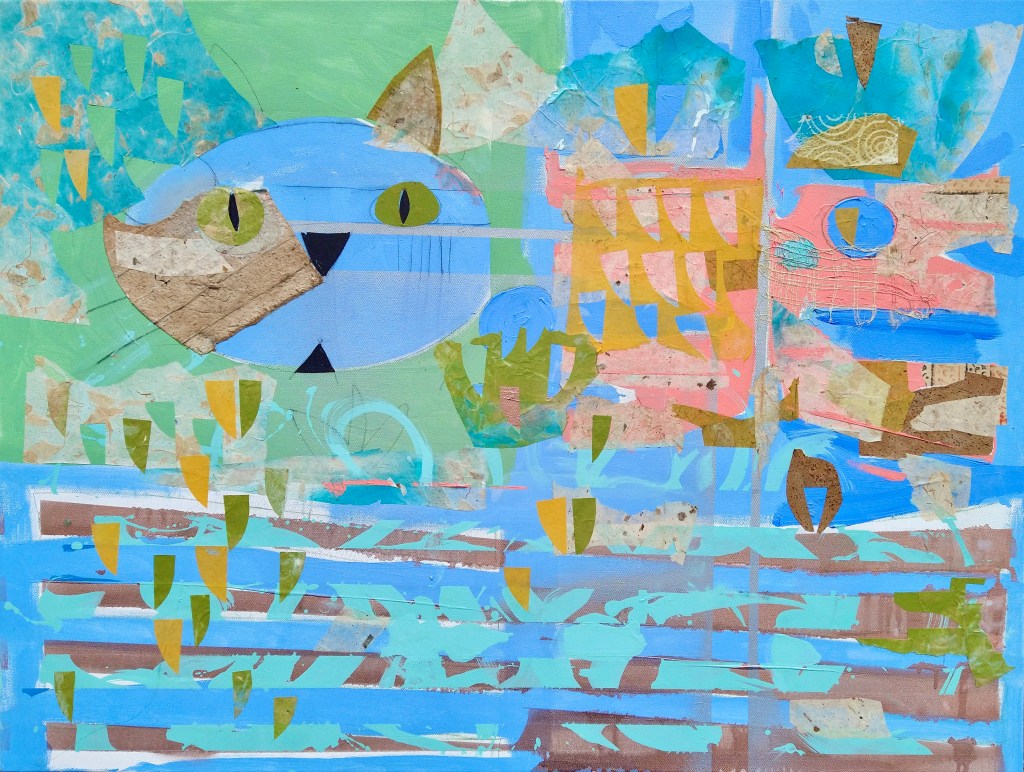 *”Shoreline” 18 x 24″ Acrylic and Paper on Prepared Canvas.