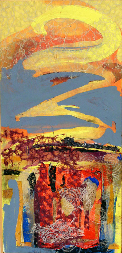 Pittsboro, NC, ca. 1999 Acrylic/collage on panel, ~12 x 24″ Hurley Collection
