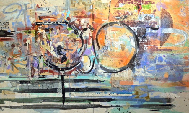 Completed after an April (2013) trip to St. Petersburg/Treasure Island, Florida to see my family. 36 X 48″ Acrylic, collage, spray enamel on canvas